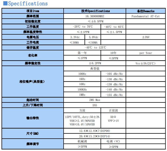 ♦可定频率广:20KHZ~800MHZ ♦精度高:常温频差最高达0.1PPM,温度频差最高达1.5PPM ♦产品尺寸:20.8*13.5*7.0MM 12.8*12.8*7.0MM(可定做高度5MM的) |