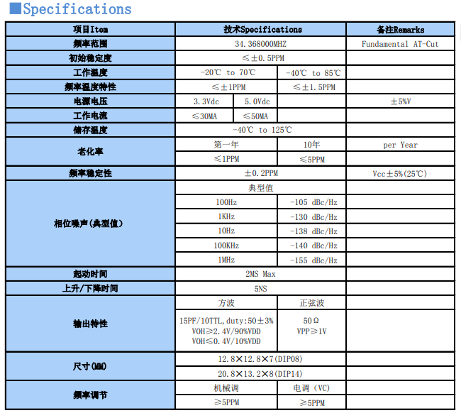 首 页  >>   产品展示  >>  温补晶振TCXO30MHZ以上频点   >>  有源 34.368MHZ 温补晶振 TCXO