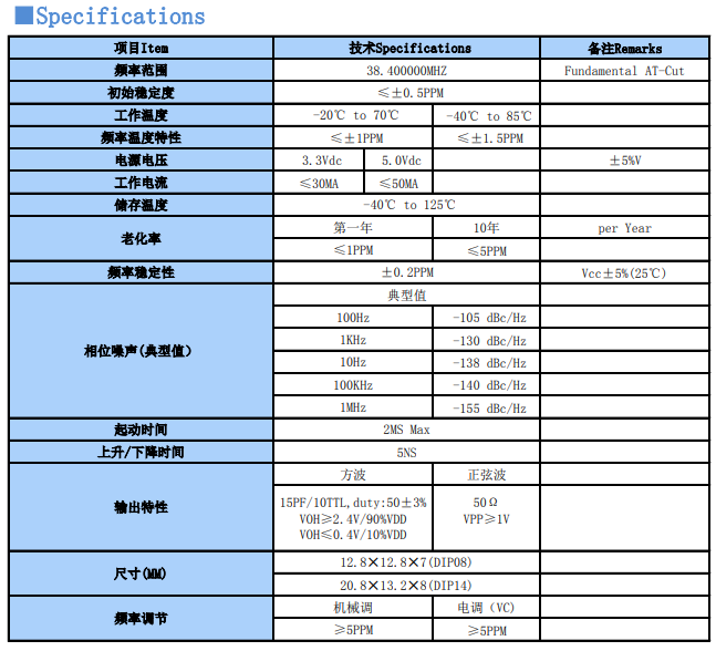 首 页  >>   产品展示  >>  温补晶振TCXO30MHZ以上频点   >>  有源 38.4MHZ 温补晶振 TCXO