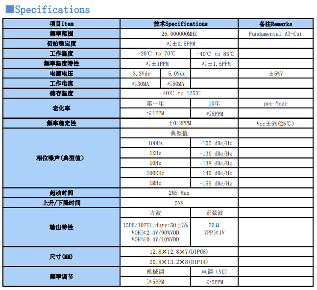 首 页  >>   产品展示  >>  温补晶振TCXO30MHz以下频点   >>  有源温补晶振TCXO26MHZ
