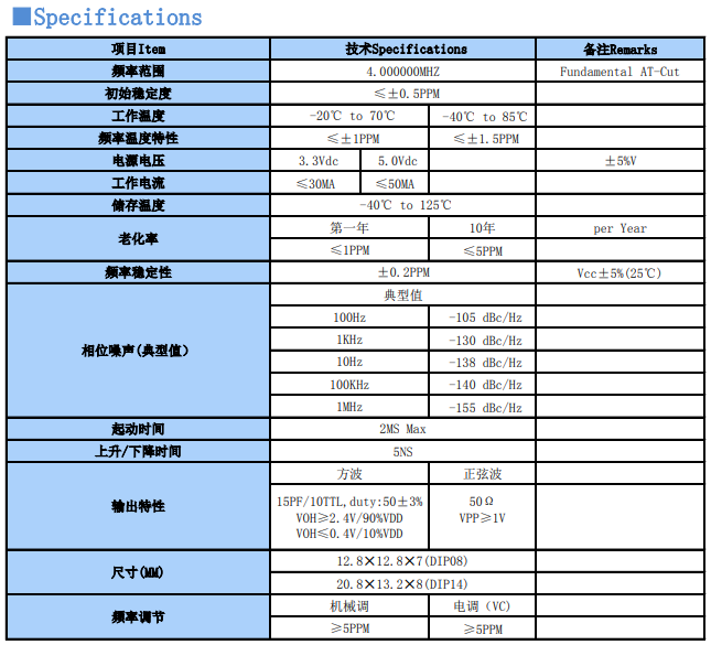 ♦可定频率广:20KHZ~800MHZ ♦精度高:常温频差最高达0.1PPM,温度频差最高达1.5PPM ♦产品尺寸:20.8*13.5*8.0MM 12.8*12.8*7.0MM |