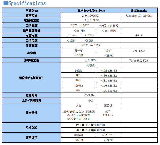 ♦可定频率广:20KHZ~800MHZ ♦精度高:常温频差最高达0.1PPM,温度频差最高达1.5PPM ♦产品尺寸:20.8*13.5*7.0MM (可定做高度5MM的) |