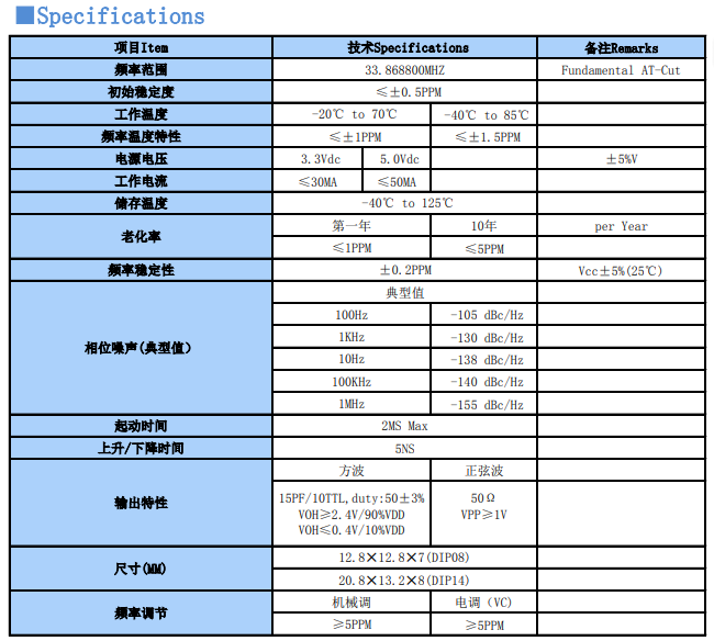 首 页  >>   产品展示  >>  温补晶振TCXO30MHZ以上频点   >>  有源 33.8688MHZ 温补晶振 TCXO